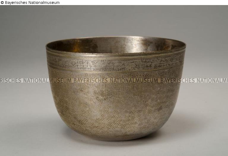 Befund: Auf der Unterseite des Bodens: Meisterzeichen 'PS in Queroval', für Paul Solanier (Meister um 1665, gest. 1724); Beschauzeichen (leicht verschlagen) 'Pyr', für Augsburg, 1688-1689; Tremolierstich; handschriftlich mit weißer Farbe "39/162" (Inv.-Nr. des Bayerischen Nationalmuseums)./A.G., 2018