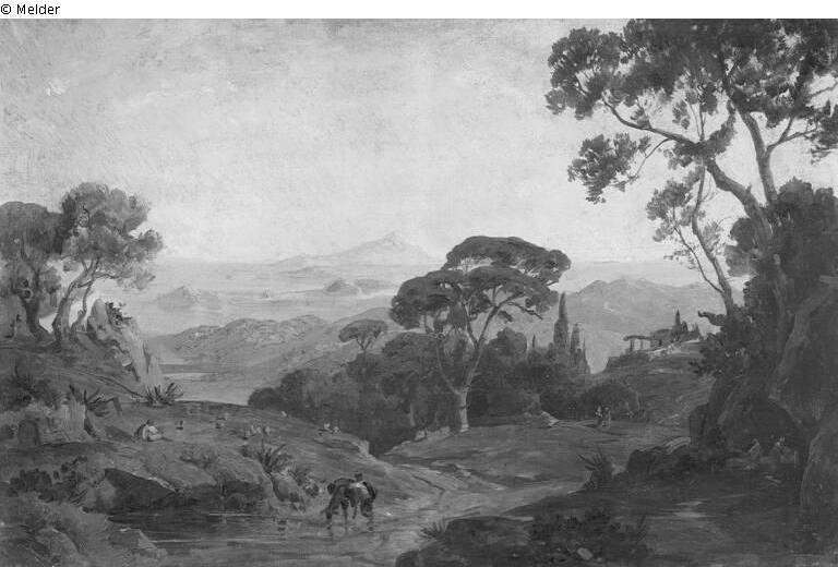 Fundmeldung | Einzelobjekt Küstenlandschaft mit Pinien und Blick auf den Posilipp Lost Art-ID218872 Vorherige Weiter Hersteller/Künstler:in Preller, Friedrich (der Ältere) Geburt 1804.04.25, Eisenach Tod 1878.04.23, Weimar WirkungsortWeimar; Rom TitelKüstenlandschaft mit Pinien und Blick auf den PosilippObjektartMalereiObjektgruppeMalereiMaterial / TechnikÖl ; Pappe / gemalt Höhe 38,50 cm Breite 57,00 cm Inventarnummermü10719Beschreibung Blick über Piniengruppen auf den Posilipp und das blaue Meer. Vorn halblinks Reiter mit saufendem Pferd an einem See. Weiterlesen Weniger anzeigen Bestand Kulturgüter aus dem ehemaligen ReichsvermögenVeröffentlicht seit2001 Kontakt Kunstverwaltung des Bundes Herbert-Bayer-Straße 5 13086 Berlin Deutschland E-Mailprovenienzforschung@kvdb.bund.deHomepagehttp://www.kunstverwaltung.bund.de