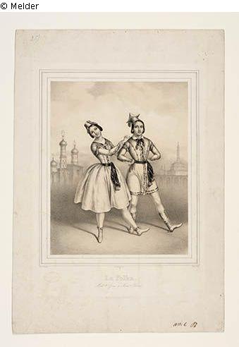 Carlotta Grisi tanzt Polka mit ihrem Partner Jules-Joseph Perrot. Er trägt eine Czapska, die polnische Tänzermütze.