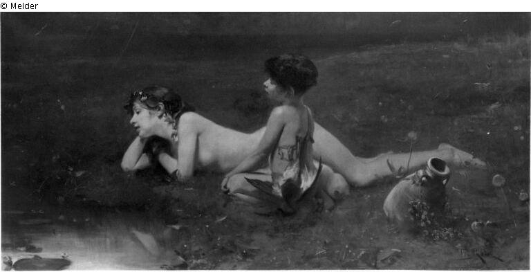 Fundmeldung | Einzelobjekt Mädchen, an einem Weiher liegend, mit einem Zigeunerknaben Lost Art-ID218861 Vorherige Weiter Hersteller/Künstler:in Piglhein, Bruno Geburt 1848.02.19, Hamburg Tod 1894.07.15, München WirkungsortMünchen TitelMädchen, an einem Weiher liegend, mit einem ZigeunerknabenObjektartMalereiObjektgruppeMalereiMaterial / TechnikÖl ; Leinwand / gemalt Höhe 70,50 cm Breite 140,50 cm Inventarnummermü10689Beschreibung Signatur: Piglhein;Der Weiher links; das nackte Mädchen liegt und schaut in den See. Davor ein hockender Knabe. Rechts ein Krug. Weiterlesen Weniger anzeigen Bestand Kulturgüter aus dem ehemaligen ReichsvermögenVeröffentlicht seit2001 Kontakt Kunstverwaltung des Bundes Herbert-Bayer-Straße 5 13086 Berlin Deutschland E-Mailprovenienzforschung@kvdb.bund.deHomepagehttp://www.kunstverwaltung.bund.de