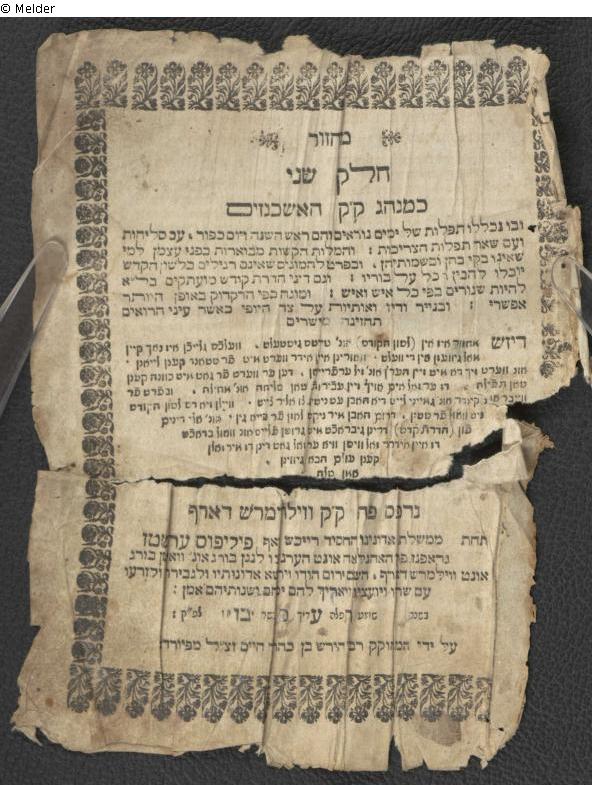 Fundmeldung | Einzelobjekt Maḥzor: ke-minhag ḳ.ḳ. ha-ashkenazim / Ḥēleq 2: Sûkkôt, Pesaḥ we-Šāvûôt Lost Art-ID612434 Vorherige Weiter Verlag Hirsh ben Ḥayim TitelMaḥzor: ke-minhag ḳ.ḳ. ha-ashkenazim / Ḥēleq 2: Sûkkôt, Pesaḥ we-ŠāvûôtErscheinungsortṾilhermerś Dorf Erscheinungsdatum1738 = 498 [jüd. Zeit]ObjektartBuchObjektgruppeBibliotheksgutSignatur04/1 Sulz 32Beschreibung Weitere Informationen: Externer Link Weiterlesen Weniger anzeigen Provenienz Emanuel Regensburger (1853-1942)Heinrich Meißner (1914-2001), Pfarrer in Sulzbürg 1944-1984Andreas Bauch (1908-1985)NS-RaubgutEichstätt, Priesterseminar, erworben 1985 durch SchenkungProvenienz Meißner/Bauch durch Schenkungszusammenhang belegt. Weiterlesen Weniger anzeigen Veröffentlicht seit01.03.2023 Kontakt Universitätsbibliothek Eichstätt-Ingolstadt Am Hofgarten 1 85072 Eichstätt Deutschland Homepagehttps://www.ku.de/bibliothek Ansprechpartner:in Dr. Heike Riedel-BierschwaleE-Mailub-historische-bestaende@ku.de