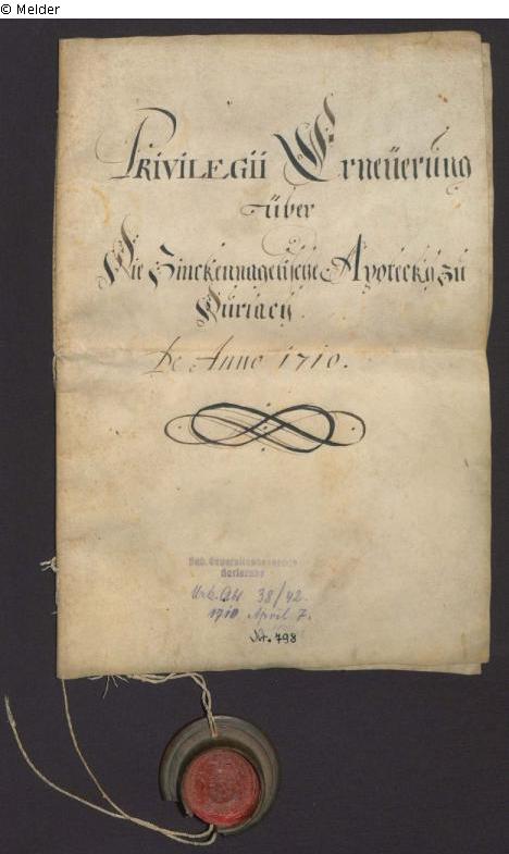Markgraf Karl III. Wilhelm von Baden-Durlach erneuert der Augusta Maria Zinkennagel, Witwe des Durlacher Apothekers Paul Anton Zinkennagel, das dem Letzteren durch den Markgrafen Friedrich VII. Magnus von Baden-Durlach am 4. August 1694 erteilte Privileg