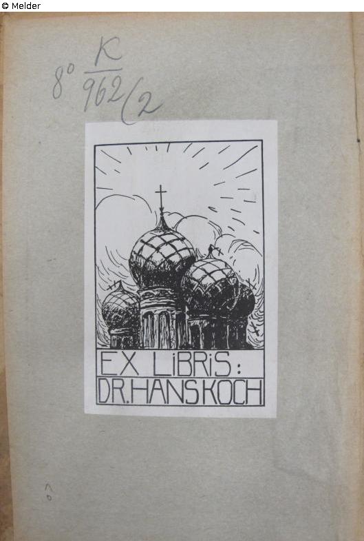 8°, im Deckel Exlibris Dr. Hans Koch, auf Schmutzblatt Vermerk Ostfeldzug 1942, auf Titelblatt Stempel des Pädagogischen Instituts in Poltava sowie Signatur 9/47.7/H-96 und 147349