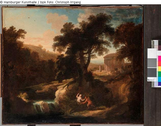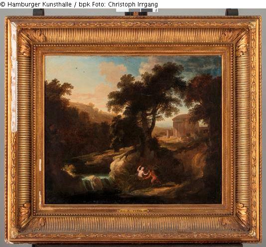 Nymphe und Satyr / Landschaft mit allegorischer Darstellung / Landschaft in Poussins Art / Faun und Nymphe / Pan et Syrinx