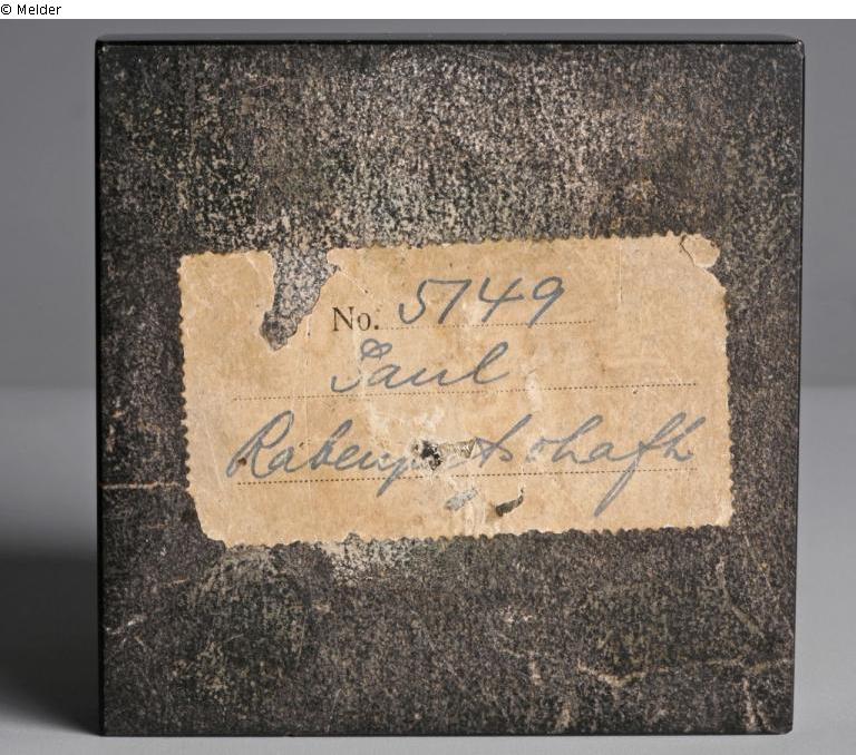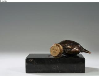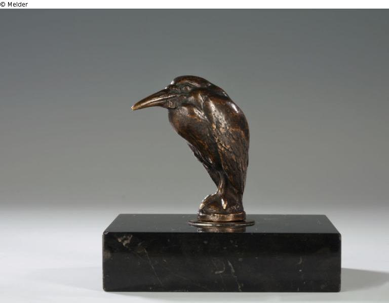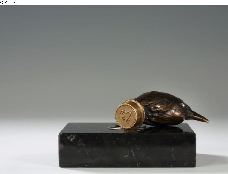 Alternative Bezeichnungen: "Petschaft Rabe"; "Rabenpetschaft“ / Siegelabdruck: Initialen, Auflösung unklar, s. Abb.; Auf dem Sockel Etikett Cassirer: "No. 5149/ Gaul/ Rabenpetschaft". 1902 Ausstellung eines Reihers als Petschaftsgriff in der Galerie Paul Cassirer, Berlin (Werkidentität unklar); 1904-1919 Verkäufe von ca. 14 bis 15 Güssen über Paul Cassirer, Kunstsalon Cassirer, Berlin; nach 1921 weitere Verkäufe von Nachgüssen, autorisiert durch das Nachlass-Kuratorium, über Paul Cassirer, Berlin. Nach 1930 Verkauf von Teilen des künstlerischen Nachlasses an Dr. Paul Geipel, Dresden, der zuvor auch schon Exemplare über Cassirer erworben haben soll, aber in den Geschäftsbüchern nicht nachweisbar ist. Im Museum der bildenden Künste, Leipzig, sind noch zwei weitere Exemplare aus der Sammlung von Paul Geipel nachweisbar, die nicht mit dem Exemplar im NLMH in Zusammenhang stehen können.