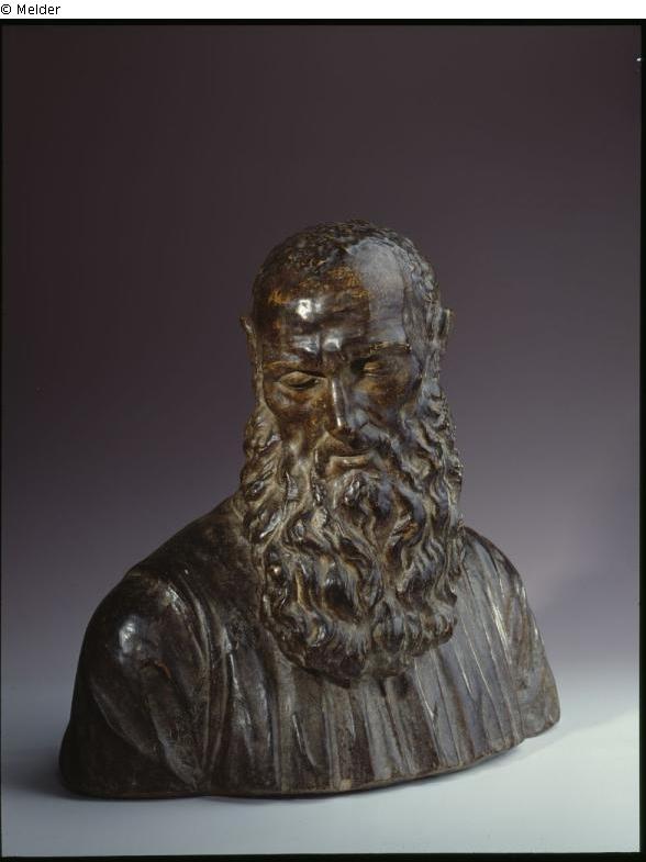 Büste eines Mannes, nach links gewandt, auf originalem Holzsockel