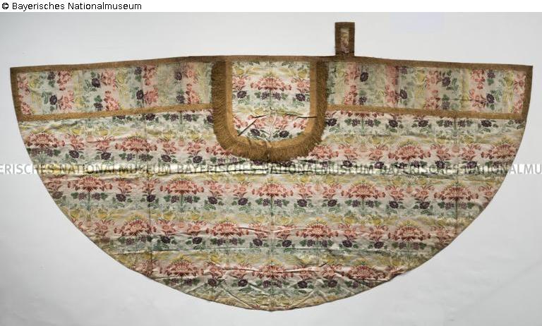 Provenienzforschung: von 'Reichsleiter' Martin Bormann (1900-1945) als Fiduziar für die NSDAP erworben: "Es wird festgestellt, dass a) die in der Anlage zur Übertragungsurkunde näher bezeichneten, bei der Treuhandverwaltung von Kulturgut in München, Arcisstrasse 10 lagernden Kunstgegenstände Eigentum der ehemaligen NSDAP und der Parteikanzlei am Obersalzberg, Berchtesgaden waren, b) diese Vermögensgegenstände laut den bei der Treuhandverwaltung von Kulturgut in München befindlichen Belegen und Rechnungsunterlagen von dem ehem. Reichsleiter der NSDAP Martin Bormann erworben wurden, dieser gleichzeitig auch Leiter der sogenannten Bormann-Verwaltung in Berchtesgaden, Franziskanerplatz 6 war, c) es sich daher nicht um Privateigentum des Martin Bormann handelt, sondern um einen Eigentumserwerb für Zwecke der NSDAP, Martin Bormann also nur als Fiduziar für die NSDAP zu betrachten ist (vgl. OMGUS Direktive und Ermächtigung der Militärregierung für Bayern - Prop. Div. vom 10.2.1949 - AG 386 - MGBP), d) die übertragenen Gegenstände somit unter die KRD 50 und das MRG 58 fallen." [Az.: VI C/III D 4516: Übertragungsurkunde Nr. 2107/V ("Kunstgegenstände der ehemaligen NSDAP und der Parteikanzlei bei der Treuhandverwaltung von Kulturgut in München, Arcisstrasse 10") vom 10.12.1956]. Eingang/Receipt (Central Collecting Point München): 19.07.1945; Ausgang/Issue (Central Collecting Point München): 10.06.1949 (Ministerpräsident)/11.03.1959 (Zentralfinanzamt München). Am 18.03.1960 über den Central Collecting Point München aus dem Besitz/der Vermögenseinziehung der NSDAP/Parteikanzlei aus ehemaligem Reichsbesitz (Treuhandverwaltung von Kulturgut) als 'Überweisung aus Staatsbesitz' aus dem Besitz des Freistaats Bayern übernommen; gemäß Entschluss des Bayerischen Staatsministeriums der Finanzen vom 23.03.1961 [Az.: 0 1481/E - 17 172 Mü 2149] dem Bayerischen Nationalmuseum endgültig zugewiesen: Nr. 89 der Übertragungsurkunde Nr. 2107/V ("Kunstgegenstände der ehemaligen NSDAP und der Parteikanzlei bei der Treuhandverwaltung von Kulturgut in München, Arcisstrasse 10") vom 10.12.1956. NSDAP-Parteibesitz: aus dem NSDAP-Textilkonvolut mit der Münchner Nummer 4783 sind dem BNM vom Freistaat Bayern folgende Objekte überwiesen worden (Münchner Nummer = BNM Inv.-Nr.): 4783/1-11 = 60/143-153. Vorprovenienz: unbekannt. Zu unbekanntem Zeitpunkt aus unbekanntem Eigentum/Besitz in NSDAP-Besitz. Aufgrund der Provenienzlücke(n) kann ein NS-verfolgungsbedingter Entzug nicht ausgeschlossen werden./A.G., 2018