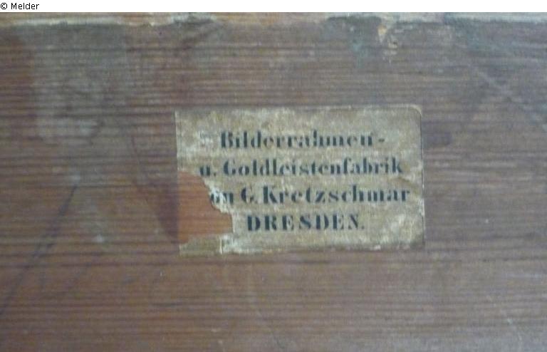 [möglicherweise dieselbe Provenienz]; verso: Aufkleber „Bilderrahmen - / u. Goldleistenfabrik / von G. Kretzschmar / DRESDEN.“