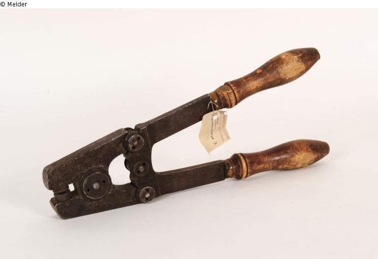 Plombenzange, Weißrussland (Sowjetunion), Postamt Mogilew (heute Mahiljou), mit Holzgriffen, kyrillische Schriftzeichen