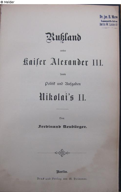 Rußland unter Kaiser Alexander III. sowie Politik und Aufgaben Nikolai’s II.