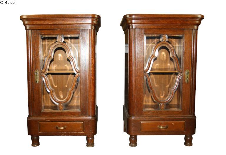Holz (Eiche) ; Glas ; Metall / geschreinert