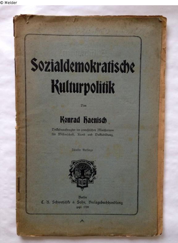 Fundmeldung | Einzelobjekt Sozialdemokratische Kulturpolitik. (5. Auflage) Lost Art-ID520868 Vorherige Weiter Autor:in Haenisch, Konrad Drucker:in Otto Dreyer, Berlin Verlag Verlagsbuchhandlung C. A. Schwetschke & Sohn TitelSozialdemokratische Kulturpolitik. (5. Auflage)ErscheinungsortBerlin Erscheinungsdatumo.J. [1919 ca.]ObjektartBuchObjektgruppeBibliotheksgutSignaturo.Nr.Beschreibung auf Umschlagtitel, oben rechts: "[...] [...]el" [unleserliche Signatur, Bleistift, getilgt] Weiterlesen Weniger anzeigen Provenienz unbekannt Weiterlesen Weniger anzeigen Veröffentlicht seit11.08.2014 Kontakt Provenienzforschung, Hausarchiv, Bibliothek Potsdam-Museum - Forum für Kunst und Geschichte Am Alten Markt 9 14467 Potsdam Deutschland Tel+49(0)331 - 289 6821Fax+49(0)331 - 289 6808E-Mailmuseum-geschichte@rathaus.potsdam.deHomepagehttp://www.potsdam.de/potsdam-museum