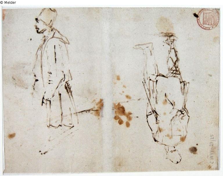 Verso Entwurf eines stehenden Mannes vom Rücken und eines stehenden Mannes von der Seite; aus zwei Teilen zusammengesetzt