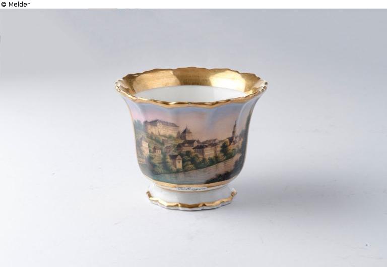 Fundmeldung | Einzelobjekt Tasse "Tübingen" mit Stadtansicht mit Schloss Hohentübingen und Neckar vom Hirschauer Steg aus Lost Art-ID578006 Vorherige Weiter Hersteller/Künstler:in Unbekannt TitelTasse "Tübingen" mit Stadtansicht mit Schloss Hohentübingen und Neckar vom Hirschauer Steg aus Datierungum 1860ObjektartGefäßObjektgruppeKunsthandwerk / -gewerbeMaterial / TechnikKeramik (Porzellan) Höhe 7,00 cm Breite 5,50 cm Durchmesser 9,00 cm Inventarnummer2874Beschreibung Beschriftung: Inschrift: "Tübingen"auf der Unterseite der Tasse: v. obern Neckar. Weiterlesen Weniger anzeigen Provenienz Ankauf 1934 durch den Kunst- und Alltertumsverein e.V., Tübingen aus dem Stuttgarter Kunsthandel für 15 RM.1941 mit Auflösung des Vereins in den Besitz der Städtischen Sammlung übergegangen. Weiterlesen Weniger anzeigen Veröffentlicht seit10.07.2018 Kontakt Stadtmuseum Tübingen Kornhausstr. 10 72070 Tübingen Deutschland Tel+49 (0)7071 204 1711Fax+49 (0)7071 204 1797E-Mailstadtmuseum@tuebingen.deHomepagehttp://www.tuebingen.de/stadtmuseum Ansprechpartner:in Frau Wiebke Ratzeburg PositionLeitung StadtmuseumTel+49 (0)7071 204 1794E-Mailwiebke.ratzeburg@tuebingen.de Ansprechpartner:in Frau Daniela ÜbelhörPositionSammlungsbetreuerinE-Maildaniela.uebelhoer@tuebingen.de