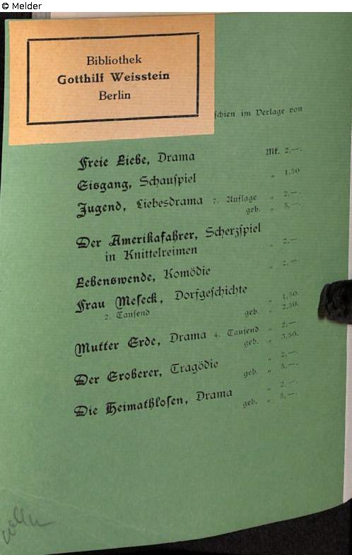 wahrscheinlich bis 1933: Sammlung Gotthilf Weisstein, Berlin
