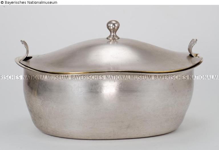 Provenienzforschung: Terrine und Untersetzplatte (BNM Inv.-Nr. 76/13-14) wurden unter zwei verschiedenen Münchner Nummern im Central Collecting Point inventarisiert und finden sich unter den jeweiligen Nummern getrennt auch in den Datenbanken auf der Website des Deutschen Historischen Museums. Angaben zur Provenienz in der Datenbank zum Central Collecting Point nur unter der Münchner Nummer 5046/20 (zur Terrine) in der Alten Ministerpräsidentenkartei als "German property" sowie in der Restitutionskartei in einer späteren Bleistifteintragung als "dt. Besitz". In der Datenbank zur "Sammlung Göring" findet sich zur Münchner Nummer 5039/22 (Untersetzplatte): "Vorbesitz - Keine Angabe (Unbekannt). Einlieferung - Slg. Göring". Unter der Münchner Nummer 5046/20 (Terrine) ist zwar das Foto richtig zugeordnet, die Angaben zum Stück aber beschreiben ein bislang nicht identifiziertes Werk von "Wilm, Johann Michael (1885 - 1963), Silber vergoldet, 40,5 x 21,7 x 28 cm", für die zum Vorbesitz keine Angaben vorliegen. Die Terrine mit Untersetzplatte BNM Inv.-Nr. 76/13-14 stammt aus dem Service für den 1768 mündig gewordenen Kurfürsten Friedrich August III., den Gerechten von Sachsen. Sie ist Bestandteil des 'Familiensilbers' von Schrödel in der Hofsilberkammer zu Dresden. Mit Inkrafttreten der sächsischen Verfassung 1831 bis ins Jahr 1918 weiterhin Teil der Hofsilberkammer unter Wahrung des königlichen Eigentums (Teil des Hausfideikommisses der sächsischen Könige). 1919 enteignet. Mit dem Auseinandersetzungsvertrag von 1924, der einen Ausgleich seitens des Freistaats Sachsen mit dem Verein Haus Wettin, Albertinische Linie, festlegte, wurden laut Übergabeliste vom 25.06.1924 dem Verein Haus Wettin auch eine Terrine mit Untersetzplatte, gezeichnet "1.", übereignet. In der Folge befand sich das Silber aus der Hofsilberkammer im Königlichen Palais, Parkstraße 7, in Dresden. Ab 1925/26 Verkäufe durch den Verein Haus Wettin, darunter von Teilen des 'Familiensilbers'. Möglicherweise auch Terrine "1" mit Untersetzplatte unter diesen Verkäufen, aufgrund eines fehlenden Inventars jedoch nicht zu belegen. Das spätere Eigentum einer NS-verfolgten Person ist daher möglich, bislang jedoch nicht dokumentiert. 1933 wurden wohl auch Terrinen aus dem 'Familienservice', gezeichnet mit "F.A." und Kurhut, anlässlich der Dresdener Ausstellung zu Ehren Augusts des Starken nach Schloss Moritzburg verbracht und dort während oder nach der Ausstellung neben der Tafel Augusts des Starken auf einem durch Fotos dokumentierten Schaubuffet präsentiert. Die Terrine mit Untersetzplatte BNM Inv.-Nr. 76/13-14 ist auf den Fotos jedoch nicht zu identifizieren. Möglicherweise bei einem noch nicht dokumentierten Besuch Görings während dieser Ausstellung auf Schloss Moritzburg 1933 durch Prinz Ernst Heinrich von Sachsen Göring geschenkt. 1934 infolge des Röhm-Putsches ursächlich durch Göring veranlasste Verhaftung und Internierung des Prinzen Ernst Heinrich von Sachsen im Konzentrationslager Hohenstein, jedoch spätere Haftentlassung sowie anschließende Bewachung durch die Gestapo in Schloss Moritzburg. Besuch Görings am 9./10.02.1935 auf Schloss Moritzburg. Möglicherweise war die Terrine ntersetzplatte BNM Inv.-Nr. 76/13-14 ein durch Göring 'erbetenes' Geschenk 1935, dieses bislang jedoch nicht dokumentiert. Zu unbekanntem Zeitpunkt aus unbekanntem Eigentum/Besitz in die 'Sammlung Göring'. Aufgrund der Provenienzlücke(n) kann ein NS-verfolgungsbedingter Entzug nicht ausgeschlossen werden./I.v.z.M., 2017