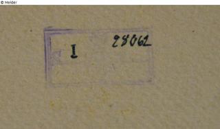 Provenienzmerkmale: Vorderseite signiert „Del. M. Wocher f. 1825“; Rückseite Passepartout: verblasstes Exlibris in blau mit schwarz aufgeschriebenen Zahlen „S (?) I / 28062“; in Bleistift „153“, „P. C. 12183 / rh – se –“