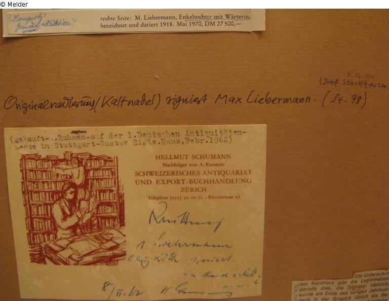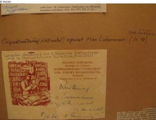signiert; auf der Rückseite: handschriftliche Bewertung, mehrere Zeitungsartikel und der Kaufbeleg vom Eigentümer aufgeklebt