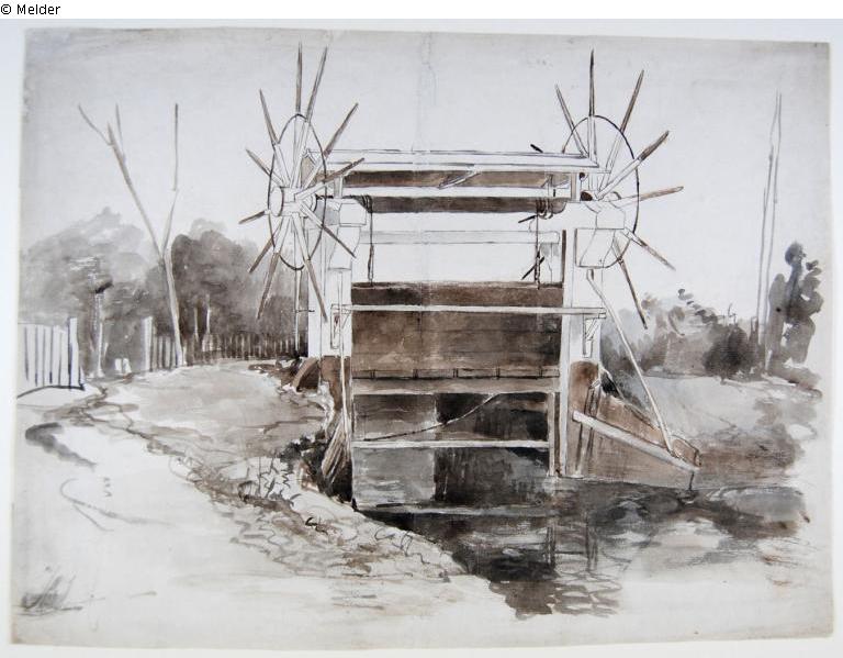 Farbe braun, grau / gezeichnet (Pinsel) ; laviert