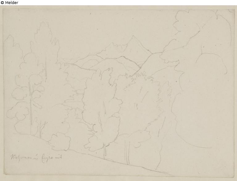 Beschriftung unten links in Bleistift: „Watzmann von Eigen aus“