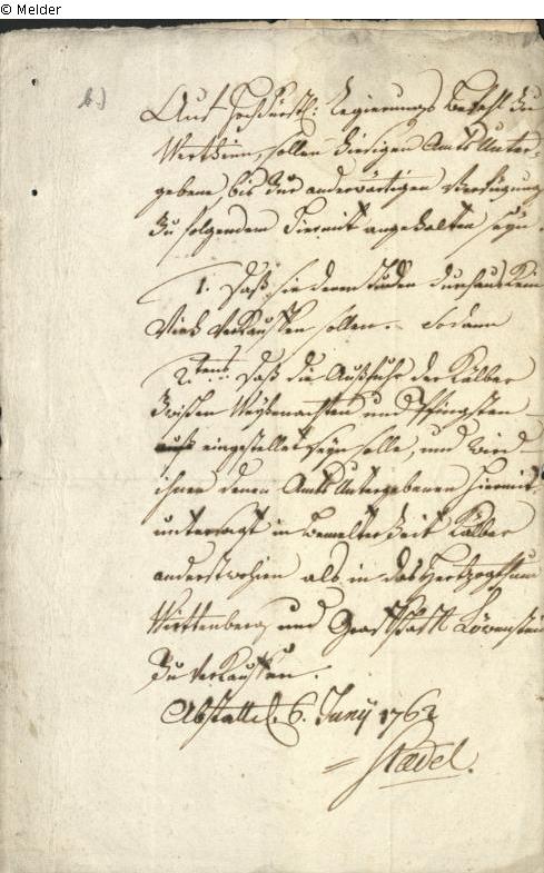Weisung der Regierung zu Wertheim an die Amtsuntergebenen des Amtes Wertheim wegen des Verbots des Verkaufs von Vieh an die Juden und der Ausfuhr von Kälbern zwischen Weihnachten und Pfingsten mit Ausnahme der Ausfuhr an das Herzogtum Württemberg und in