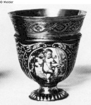 Suchmeldung Becher Hersteller/Künstler:in Baur, Tobias (1660) Objektart Kunsthandwerk / -gewerbe Material / TechnikMetall (Silber) ; Emaille / vergoldet ; graviertLost Art-ID208633