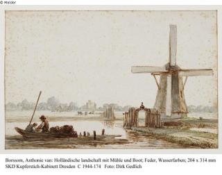 Fundmeldung Holländische Landschaft mit Mühle und Boot Hersteller/Künstler:in Borssom, Anthonie van Hersteller/Künstler:in Backhuysen, Ludolf (auch zugeschrieben) Objektart Zeichnung Material / TechnikKreide schwarz ; Farbe braun ; Wasserfarbe ; Papier (Bütten)...Lost Art-ID584958