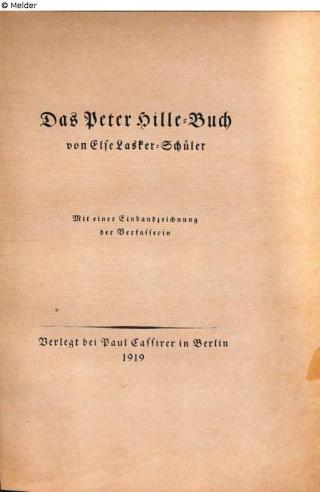 Fundmeldung <<Das>> Peter-Hille-Buch Autor:in Lasker-Schüler, Else Verlag Cassirer Objektart Buch Lost Art-ID631971