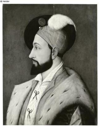 Suchmeldung Portrait d'un homme de profil avec chapeau de plumes et capuchon de fourrure / Porträt eines Mannes im Profil mit Federhut und Pelzkapuze Presumé Charles d'Orléans / Wahrscheinlich Karl von Orléans Hersteller/Künstler:in Clouet, Jean (wahrscheinlich (oder Schule von)) Hersteller/Künstler:in Clouet, François (?) Objektart Gemälde Material / TechnikÖl ; Holz / gemaltLost Art-ID635803