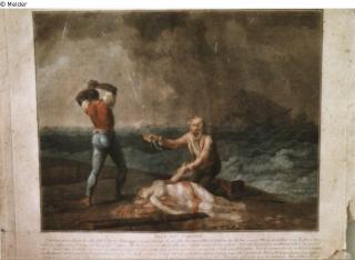 Fundmeldung Paul und Virgine (Schiffbrüchige), nach Schall Hersteller/Künstler:in Descourtés Objektart Druckgrafik Material / Technikgedruckt (Mezzotinto) ; koloriertLost Art-ID237711