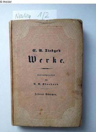 Fundmeldung C. A. Tiedges Werke (Band 10) Herausgeber Eberhard, A. G. Verlag Ringersche Verlagsbuchhandlung Objektart Buch Lost Art-ID529972