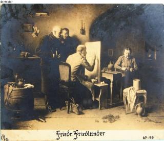 Fundmeldung Politisches Gespräch am Wirtshaustisch (Schankstube) Hersteller/Künstler:in Friedländer, Friedrich Objektart Gemälde Material / TechnikÖl / gemaltLost Art-ID221018