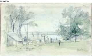 Fundmeldung Bootsanlegestelle in Stralau Hersteller/Künstler:in Heide, Alfred Objektart Zeichnung Material / TechnikBleistift ; Papier ; Karton / gezeichnetLost Art-ID475434