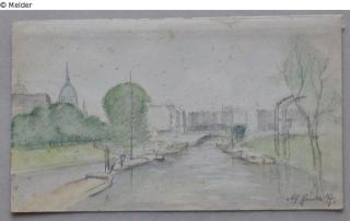 Fundmeldung Blick von der Brücke in der Prinzenstraße zum Urban Hersteller/Künstler:in Heide, Alfred Objektart Zeichnung Material / TechnikBleistift ; Papier ; Karton / gezeichnetLost Art-ID475436