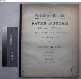 Fundmeldung Geistliche Musik: Pater noster für zwei Chöre Autor:in Klein, Bernhard Verlag Trautwein Objektart Notenblätter Lost Art-ID613521