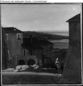 Fundmeldung Blick über Dächer in Olevano Hersteller/Künstler:in Olivier, Friedrich Objektart Gemälde Material / TechnikÖl ; Papier ; Holz / gemaltLost Art-ID292546