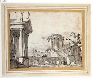 Fundmeldung Antike Bauwerke Hersteller/Künstler:in Pannini, Giovanni Paolo Objektart Zeichnung Material / TechnikTusche ; Papier / gezeichnet (Feder) ; laviertLost Art-ID569049