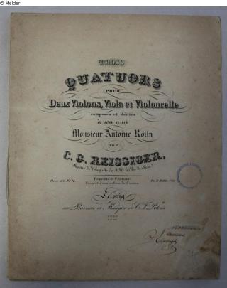 Fundmeldung Trois Quatuors Autor:in Reissiger, Carl Gottlieb Verlag Peters Objektart Notenblätter Lost Art-ID613561