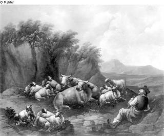 Fundmeldung Lagernde Herde (Kühe) mit Hirt Hersteller/Künstler:in Roos, Johann Heinrich Objektart Malerei Material / TechnikÖl ; Leinwand / gemaltLost Art-ID219116