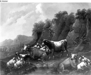 Fundmeldung Lagernde Herde im Gebirge Hersteller/Künstler:in Roos, Johann Heinrich Objektart Malerei Material / TechnikÖl ; Leinwand / gemaltLost Art-ID219120