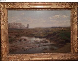 Fundmeldung Terrain mit weidenden Schafen bei Dachau Hersteller/Künstler:in Weber, Paul Objektart Gemälde Material / TechnikÖl ; Leinwand / gemaltLost Art-ID601160