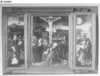 restituiert Suchmeldung Flügelaltar Triptychon Christus am Kreuz mit Maria, Johannes und Magdalena mit Sibylle von Tibur und Kaiser Augustus und einem Heiligen Hersteller/Künstler:in Patinir, Joachim Hersteller/Künstler:in Patinir, Joachim (Werkstatt); Südniederländisch Objektart Retabel Material / TechnikgemaltLost Art-ID567247