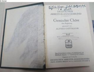 Diese Chorsammlung ist im Buch- oder Musikalienhandel nicht erhältlich und wird nur an Mitglieder des deutschen Arbeiter-Sängerbundes agbegeben. Aufführungsrecht vorbehalten. Eigentum und Verlag des Deutschen Arbeiter-Sängerbundes.