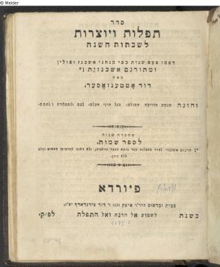 Fundmeldung Maḥzor: ke-minhag ashkenazim ... / 1: Rôš haš-šānā we-Yôm Kippûr Kippûr Verlag Eitsiḳ ben Leib Objektart Buch Lost Art-ID612425