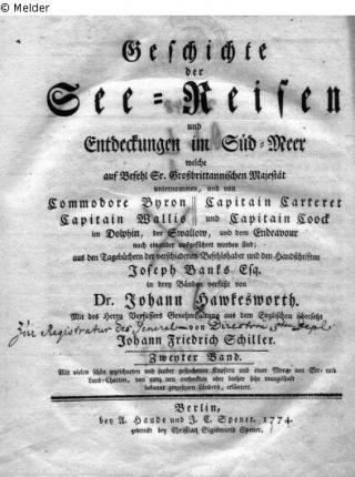 Suchmeldung Geschichte der See-Reisen und Entdeckungen im Süd-Meer.. Autor:in Brand Verlag J. C. Spener Objektart Buch Lost Art-ID218501