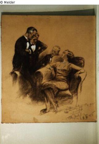 Fundmeldung Sitzende Dame und drei Herren Hersteller/Künstler:in Matejko, Theo Objektart Zeichnung Material / TechnikKohle / gezeichnetLost Art-ID237727