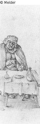 Suchmeldung Ein Mann am Tisch, eine Flüssigkeit umgießend Objektart Zeichnung Material / TechnikFarbe schwarz / gezeichnet (Feder)Lost Art-ID168896