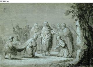 Suchmeldung Biblische Szene, ein knieendes Paar wird von einem Mann gesegnet Hersteller/Künstler:in Bramer, Leonard Objektart Zeichnung Material / TechnikTusche ; Papier bräunlich / gezeichnet ; gehöht weißLost Art-ID453958