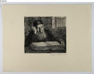 Fundmeldung Lesender Jude mit aufgestütztem Kopf Hersteller/Künstler:in Russo, Alfred Objektart Druckgrafik Material / Technikgedruckt (Radierung)Lost Art-ID319063