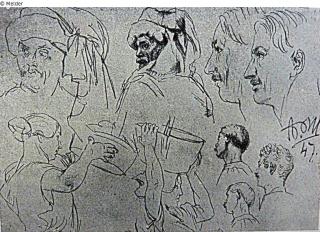 Suchmeldung Studienblatt mit zahlreichen Köpfen, eine Frau mit Gefäß auf dem Kopf Hersteller/Künstler:in Menzel, Adolph Objektart Zeichnung Material / TechnikBleistift / gezeichnetLost Art-ID478561